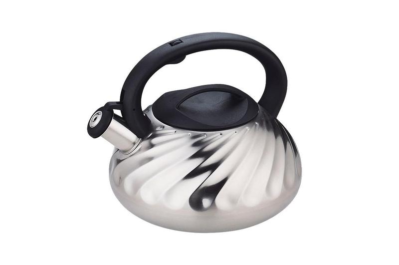 Чайник Maestro 3 л виготовлений із високоякісної неіржавкої сталі. Сталеві вироби вирізняються надзвичайною міцністю й довговічністю, мають високі гігієнічні та антикорозійні властивості, а також не вимагають особливого догляду та легко миються. Обладнаний пластиковою ручкою, що не нагрівається. Завдяки насадці-свиствку, з кнопкою для відкривання на ручці, Ви точно знатимете про момент закипання води.