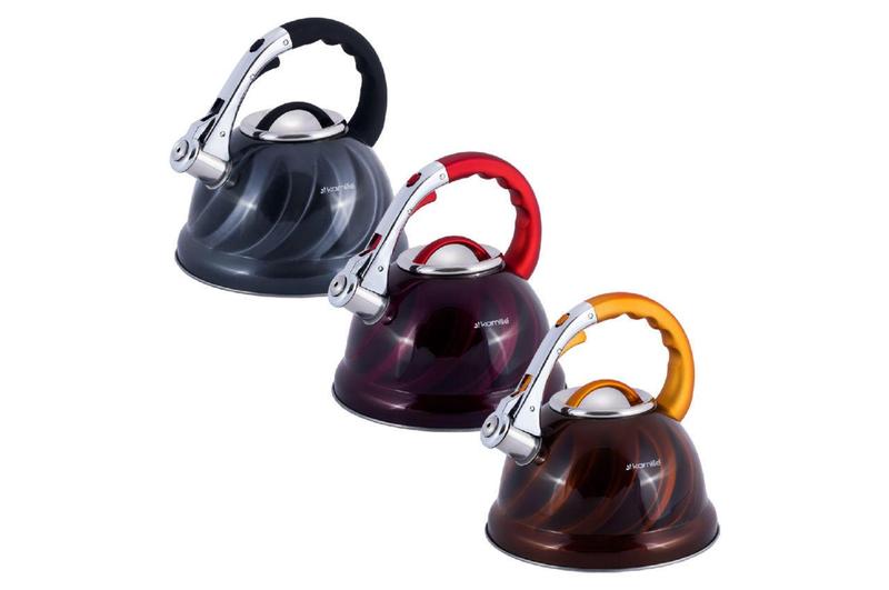 Чайник Kamille виготовлений із високоякісних матеріалів із використанням новітніх технологій виробництва, завдяки чому вони підходять для інтенсивного щоденного використання, а їхній естетичний зовнішній вигляд неодмінно підійде до дизайну Вашої кухні. Матеріал: нержавіюча сталь Матеріал кришки: нержавіюча сталь Загальний об'єм: 3 л Колір: червоний, золотий, сірий