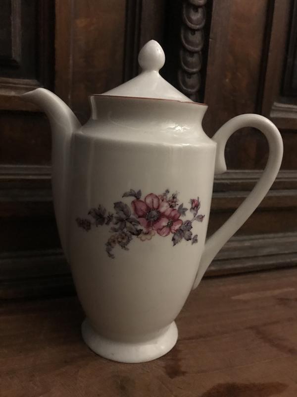 Фарфоровый кофейник с крышкой Барановского фарфорового завода середины прошлого века(см. Клеймо). Идеальнейшее состояние, бережное хранение в буфете. Высота кофейника без крышки-17 см. Без сколов и трещин.