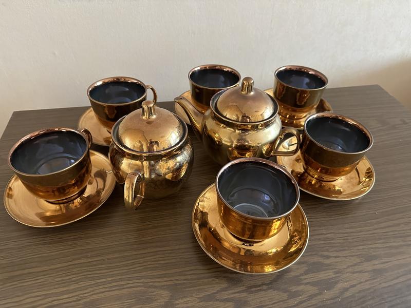 На 6 персон. Діаметр блюдця 13,5 см, діаметр чашки 8,5 см, висота чашки 6,7 см. Сервіз новий, у використанні не був. З дефектів на 1 блюдці є невеличка подряпина, та на цукорниці малесенький скол - детально на останніх 2-х фото. Запакуємо надійно і відправимо будь-яким перевізником по передоплаті, або зустріч у Києві, Дарниця.