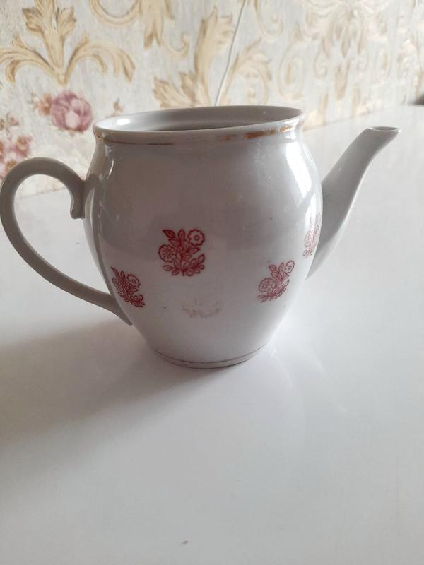 Стан відмінний без сколів, тріщин, є сліди побутування, місцями стерта позолота, чистий, вимитий, без плям і слідів заварки. Є чорні крапки у самому тесті включення при виготовленні, але це була на той час норма для першого сорту. Зручний – 500мл. Цікавий як для колекціонерів так і для відновлення свого сервізу, Зручно для чаювання на двох - 0,5л, як раз на дві чашки, і присутня сіточка в чайничку всередині - чайки в чашці не плавають, а так само для інших різних цілей, наприклад самостійних виробів хендмейд. Питання до ставки, немає питань - отже, все влаштовує і зрозуміло. Без повернень, дивіться фото – це частина опису. УП та НП.