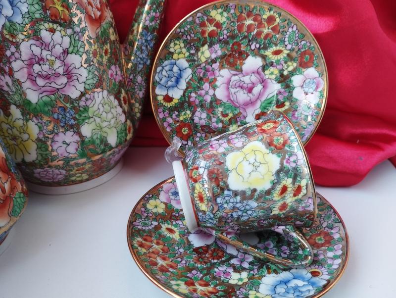 Фарфорова кавова пара з ручним розписом. Залишилися чашки з блюдцями.