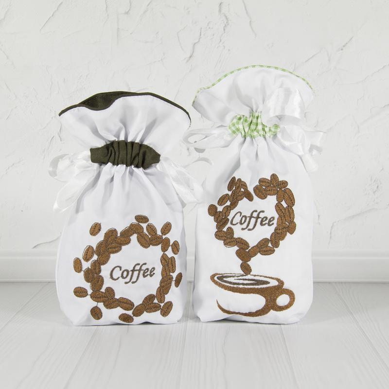 Теплі спогади, аромат затишку та надія на чудово проведений час… Що ще принесуть нам пари такої бажаної, пригіркло-солодкої якісної кави, випитої по дорозі у світ справ чи вдома під м’якою ковдрою? Як би там не було, цей напій- улюблений засіб тонізації та релаксу величезної кількості людей, тому ми не могли лишитися осторонь і пропонуємо до Вашої уваги зручний та надійний спосіб зберігання даного продукту. Мішечки, виготовлені з високоякісних матеріалів, не дають кавовим зернам зіпсуватися та набратися зайвої вологи, захищають від негативних впливів навколишнього середовища, а вишуканий малюнок-чудова додача до дизайну будь- якого інтер’єру. Ніжні та елегантні кольори, що нагадують про родинний затишок та комфорт, так і ваблять погляд. Для зручності є напис та оригінальне автентичне зображення. Ідеальне рішення не лише для декорування, а й для оптимізації простору кухні. Виконаний машинною вишивкою, що гарантує довговічність та зносостійкість. Тканина - 35% бавовна, 65%поліестер, щільність-130 г\ м². Розміри - 21 см * 15 см и 24 см * 15 см. Інструкція з догляду: мити обережно за 40 градусів, не чистити в хімчистці, не відбілювати, не сушити в пральній машині, не прасувати за високих температур