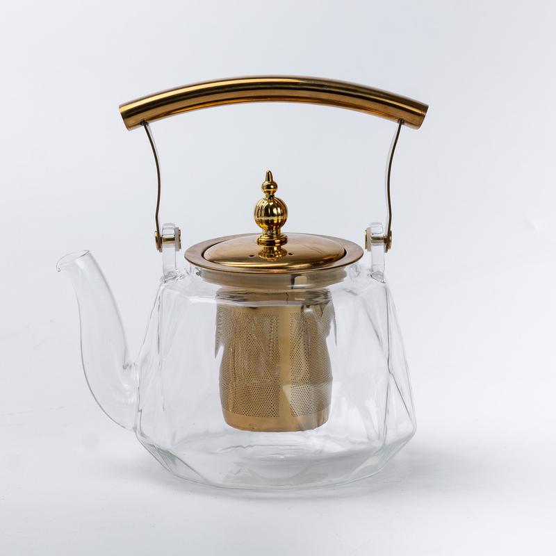 Скляний заварник для чаю об'ємом 1 літр — це елегантний і функціональний аксесуар, який додасть витонченості та затишку вашому дому. Виготовлений із прозорого боросилікатного скла, він дозволяє насолоджуватися процесом заварювання чаю, спостерігаючи за красою розпускаючогося листя і зміною кольору напою. Завдяки зручній ручці, ви зможете комфортно і безпечно наливати чай, знижуючи ризик опіків. Характеристики: Об'єм: 1 літр Розмір: 18×14×18.5 см Нижній діаметр: 14 см Верхній діаметр: 7,5 см Матеріал: Боросилікатне скло Ситечко: Так Переваги: Прозоре боросилікатне скло забезпечує візуальне задоволення від процесу заварювання чаю і не поглинає запахи. Міцний скляний корпус стійкий до високих температур, що гарантує довговічність і збереження оригінального смаку напою. Заварник підходить для приготування як листового, так і пакетованого чаю, що робить його універсальним. Догляд: Рекомендується мити заварник вручну з використанням неабразивних миючих засобів і м'яких губок, щоб зберегти його прозорість та естетичний вигляд.