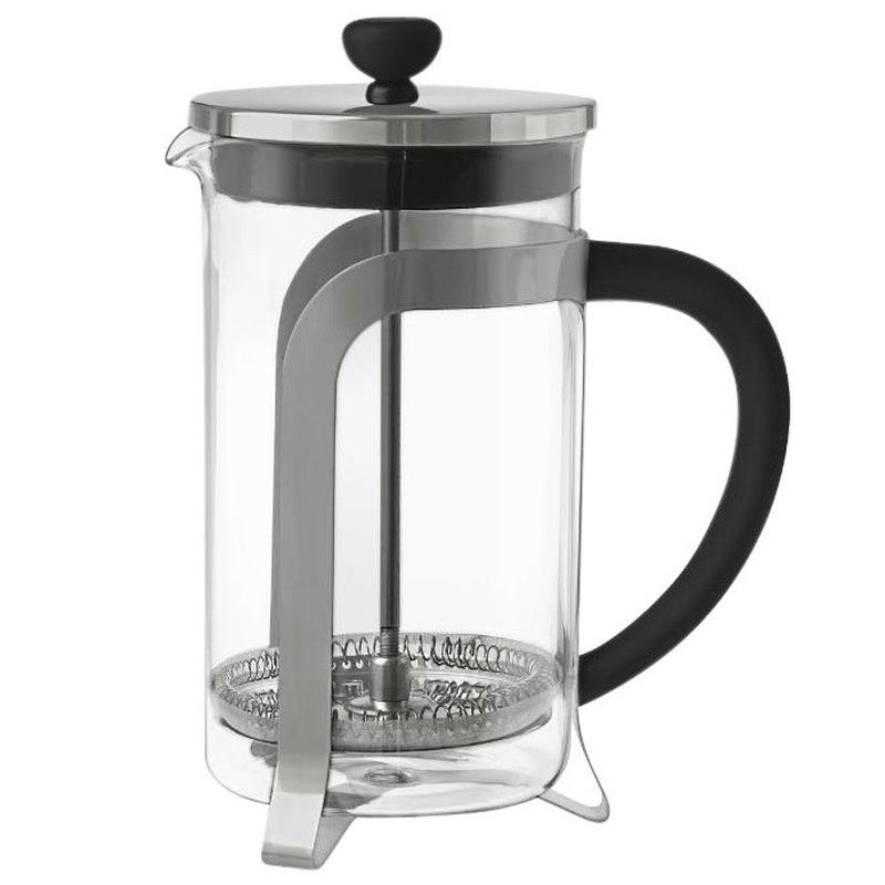 Френч-прес. Зручний, красивий, надійний і функціональний. Найменший фільтр надійно прикріплений до поршня. На кришці зсередини теплоізоляція з термостійкого пластика. Сучасний дизайн підстаканники створює ілюзію, що колба ледве тримається в ньому, але це не так – вона надійно закріплена. Каву у френч-пресі заварювати дуже просто. Для початку споліскують колбу окропом, витирають насухо, і засипають каву грубого помолу. Заливають водою з температурою близько дев'яноста градусів. На поверхні утворюється пінка. Каву швидко розмішують дерев'яною або пластиковою ложкою. На пінку акуратно опускають нижню частину поршня та закривають кришку. Настоюють чотири хвилини, потім опускають поршень. У френч-пресі дуже зручно заварювати не тільки каву, але й чай. Перш за все, потрібно сполоснути його окропом, потім засипати заварку і залити її водою потрібної температури, в залежності від виду чаю. Цю воду прийнято зливати. Почасти це робиться з метою гігієни, частково для того, щоб оживити чай. Це справа смаку. Наступну заварку настоюють від декількох секунд до декількох хвилин. Потім роблять кілька рухів поршнем вгору-вниз. Тепер чай можна пити.