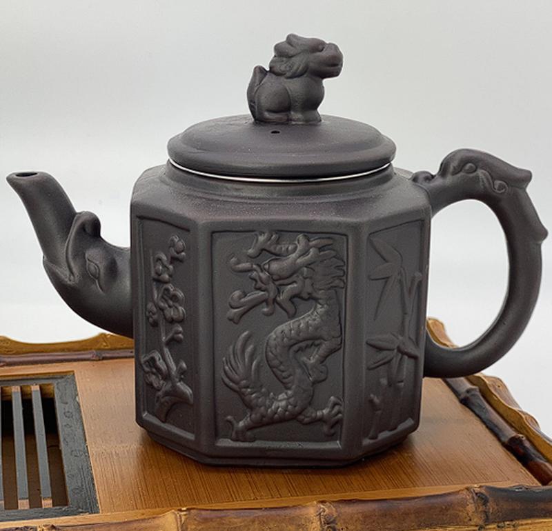 Чайник глиняный 580 мл бамбуковый дракон (темный)
