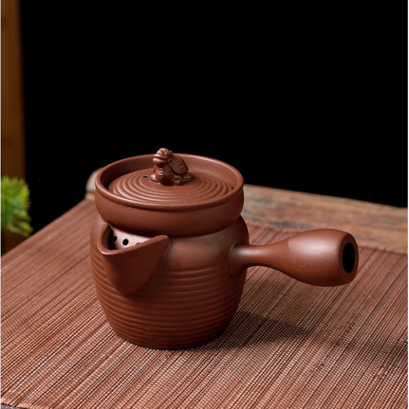 Чахай с боковой ручкой и крышкой коричневый 220мл.
