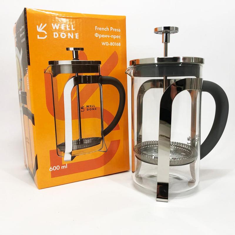 Френч прес well done wd-8016b з ручкою soft-touch 600 мл, френч прес скляний на кухню br s