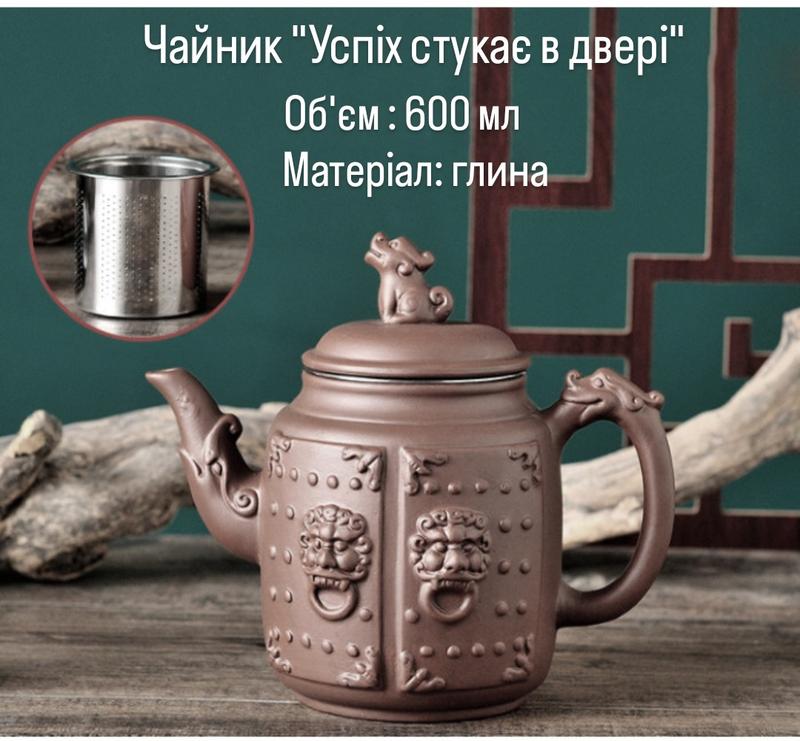 Чайник "успех стучится в двери" коричневый 600мл , глиняный чайник для чайной церемонии, ч...