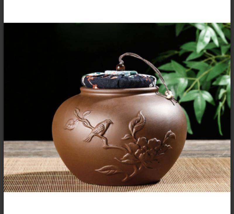 Чайница из глины песни птиц 1200 мл коричневая банка для хранения чая и сыпучих продуктов