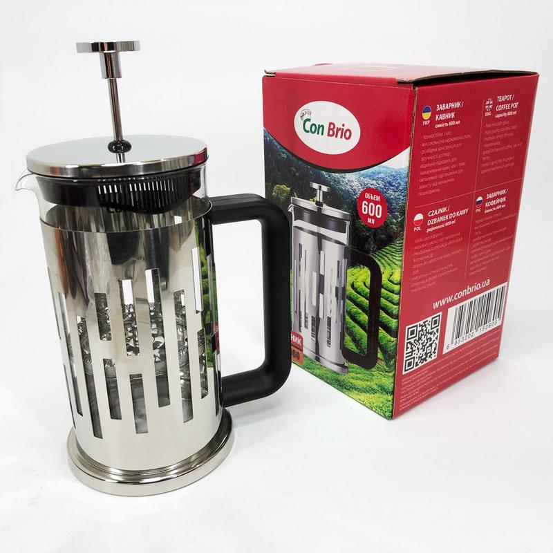🔝 Приготування чаю за допомогою прес-заварника Brio CB-5060 600 мл, Ручний френч-віс для чаю NJ-11 🛠️ Френч-прес Con Brio CB-5060 стане чудовим помічником на кухні для приготування заварного чаю методом відстоювання. Є одним із найбільш зручних пристосувань, що дають змогу заощадити час і насолодитися коханим напитком. Френч-прес чудово підійде для щоденного використання або для сервірування святкового столу, завдяки стильному та сучасному зовнішньому краєвид. 🛠️ Характеристики: - 🔘 Виробник: Con Brio - 🔘 Тип: френч-прес - 🔘 Форма: кругла - 🔘 Матеріал ручки: бакеліт - 🔘 Матеріал корпусу: нержавіюча сталь - 🔘 Об'єм: 600 мл - 🔘 Колір: сріблястий - 🔘 Матеріал колби: боросилікатне скло 📝 Додаткові параметри - 🔘 Ситечко: Є - 🔘 Матеріал корпусу: Нержавіюча сталь - 🔘 Об'єм: 600 - 🔘 Матеріал колби: Термоскло - 🔘 Матеріал ручки: нержавіюча сталь - 🔘 Стан: Нове - 🔘 Прес-фільтр: Є - 🔘 Виробник: Unique - 🔘 Матеріал: Скло - 🔘 Матеріал кришки: Нержавіюча сталь - 🔘 Тип посуду: Френч-прес