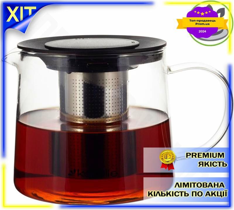 Dm чайник скляний заварювальний специфікація 2.2 kamille 1500мл із ситечком для чаю та тра...
