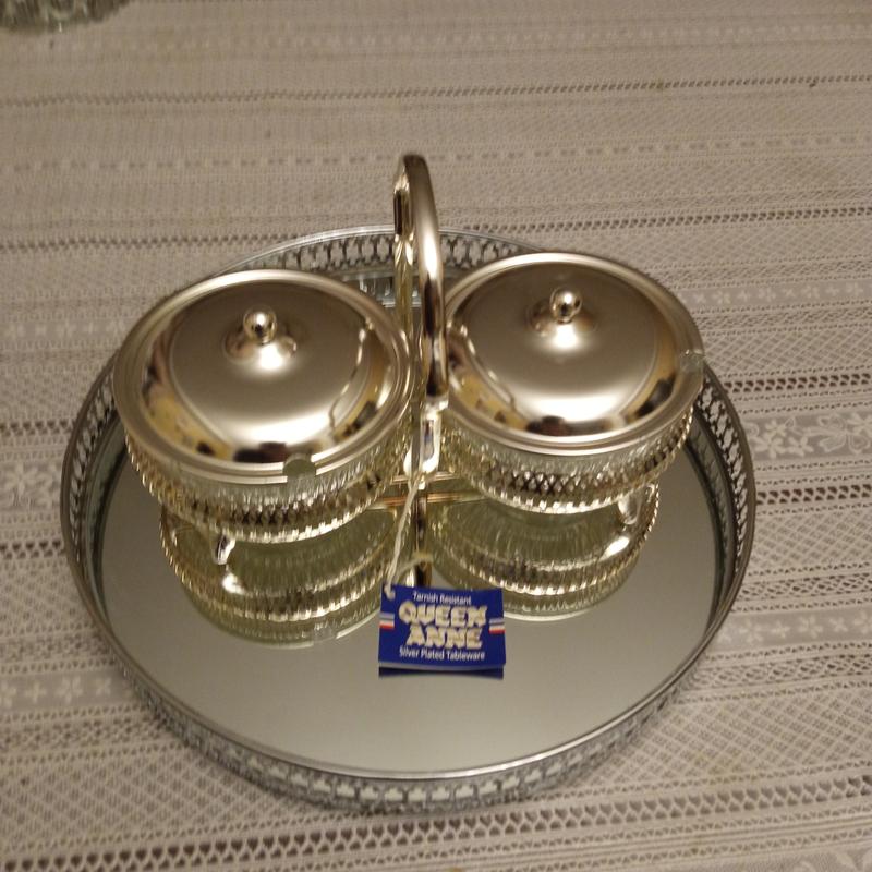 Баночки для меда , варенья в комплекте посеребряный в нова состояние 2550,с подносом 3450