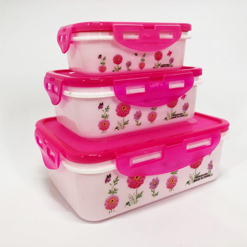 Набір судків UNIQUE UN-1511-3, що включає 3 предмети, стане незамінним помічником для будь-якої господині. Завдяки різноманітності розмірів судочків зручно зберігати приготовлену їжу; герметична кришка забезпечує збереження продуктів від впливу повітря в холодильнику та запобігає попаданню мікробів. Такі судочки зручно брати із собою у поїздки, на роботу чи на відпочинок. Яскравий барвистий дизайн робить використання судочків ще приємнішим. Характеристики: - Тип: набір судочків - Матеріал судочка: пластик - Матеріал кришки: пластик - Форма: прямокутна - Можна мити в посудомийній машині: так Комплектація: - Судочки 3 шт - Упаковка