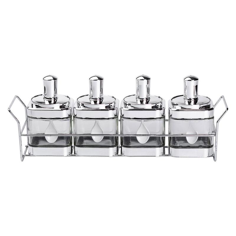 Набір банок для сипучих продуктів 4 штуки 350 мл скляні на підставці hp-1340