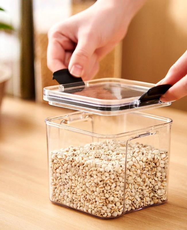 Ємність для зберігання Ємність для зберігання підходить для сипких круп, макаронів та іншого. Кришка забезпечує надійне зберігання продуктів. Місткості додадуть затишок у будь- який будинок, а також стануть невід'ємною частиною Вашої кухні. Характеристики: - Тип: ємність для зберігання - Матеріал: пластик - Форма: прямокутна - З кришкою - Колір: прозорий ємності - Колір кришки: чорний