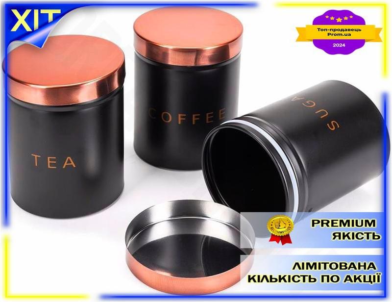 ## DM Набір кухонних банок специфікація 2.2 Kamille Black Rose 3 металеві контейнери для чаю кави цукру 8 SPE|LZ Набір банок Kamille Black Rose для сипучих продуктів. Елегантні контейнери для сучасної кухні. У комплекті 3 металеві банки з чорним пудровим покриттям та написами TEA/COFFEE/SUGAR (чай/кава/цукор). Діаметр однієї банки: 9см, висота з кришкою – 12см. Металева кришка. Назва Од.Вим. Значення СеріяBlack Rose МатеріалСталь Об'єм800 мл РозмірØ9 см, висота – 12см КришкаСталева Комплектація3 банки, 3 кришки Посудомийна машинаНі ТипНабір банок ОсобливостіЕлегантні контейнери для сипучих продуктів МатеріалМетал РозмірØ9х12см КолірЧорний Кількість у комплекті3 ПризначенняЧай, кава, цукор ПокриттяПудрове Не проґавте можливість, кількість акційних пропозицій обмежена! Будьте пильнi! На ринку з’явилося багато пiдробок низької якості, якi видають за opигiнaл! Ми гарантуємо найвищу якicть нашої продукції в Україні, яка бездоганно виконує свої функцiї та дарує вам лише позитивнi емоції. Чому покупці обирають нас? Рекомендації та позитивнi вiдгуки вiд реальних покупцiв Наш інтернет-магазин пишається численними схвальними вiдгуками вiд задоволених клієнтів. Перегляньте їхнi думки та рекомендацii безпосередньо тут або на нашому сайті, щоб переконатися у правильностi вашого вибору. Відкритість та поряднicть Ми будуємо відносини з клієнтами на основі чесності та відкритості, завжди готові йти назустріч. Всі деталi про товари, гарантii та умови обміну чітко прописані на сайті, що забезпечує довipу та взаєморозуміння. Зручне повернення без зайвих клопотів Ми розуміємо, що іноді трапляється, що річ не пiдiйшла. Тому наша система повернення проста та зрозуміла, щоб ви почували себе впевнено та спокійно пiсля покупки. Висококласний сервіс, 10 рокiв досвiду Наші фахівці завжди готові надати професійну консультацію та допомогти з вибором. Ми цiнуємо кожного клієнта та прагнемо зробити ваш досвід покупок максимально приємним та зручним. Оперативна доставка та рiзнi варiанти оплати Ми забезпечуємо швидку доставку по всій країні, а також пропонуємо широкий спектр способів оплати, включаючи онлайн-платежі та оплату при отриманні. Обирайте опцію, яка вам найзручніша. ✅ Кожен товар проходить ретельну перевiрку перед вiдправкою ✅ Відгуки наших вдячних клієнтів Поспішайте, залишилося лише 3 акцiйних товари! ✅ З повагою до кожного покупця ✅ ДОСТАВКА ПО ВСIЙ УКРАЇНI: Ми дбайливо пакуємо кожне замовлення, щоб вашi покупки приїхали цiлими та неушкодженими. Але, будь ласка, перевіряйте посилку уважно на наявність пошкоджень у пункті видачі, і якщо ви виявили дефекти, складіть акт разом із співробітником служби доставки. Без цього документу, на жаль, претензії не приймаються. Хоч пошкодження трапляються рiдко, особливо з крихкими речами, ми просимо вас проявити пильність при отриманні заради уникнення непорозумінь. Не зволікайте, кількість акційного товару тане на очах! Ми впевнені у високій якості нашої продукції, що підтверджують численні позитивні відгуки наших клієнтів. <strong>
