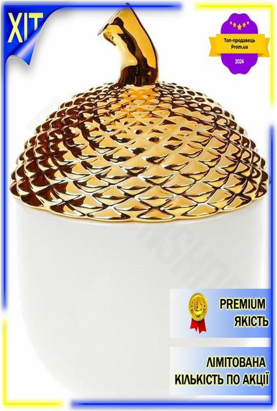 Dm керамічна банка золотий специфікація 2.2 жолудь 800мл біла для сипучих продуктів декор...