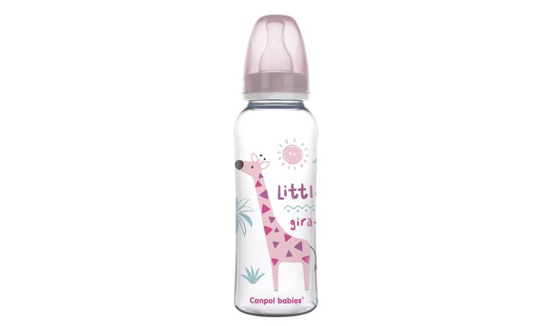 Пляшечка з вузьким шийкою спеціальної форми, яка дає змогу зручно тримати її під час годування. Легка та зручна, виготовлена з безпечного матеріалу — поліпропілену. Пляшка постачається з антикольцевою силіконовою соскою швидкого потоку, герметичним диском, який перетворює пляшечку на контейнер для зберігання/заморожування харчових продуктів, а також жорсткою кришкою, що закручується, яка не дасть рідині розлитися під час прогулянок. На пляшечках зображені фігурки різних тварин. Доступні в декількох кольорах: рожевий, жовтий, блакитний, зелений і жовтогарячий. Не містить Бісфенолу — А. От 12 месяцев.
