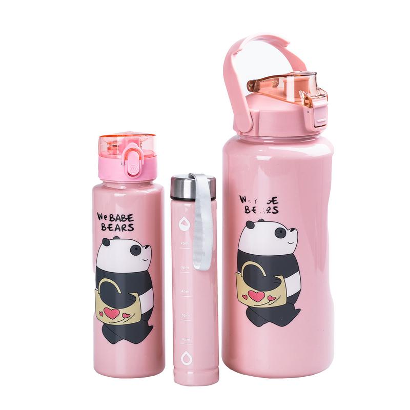 Набір пляшок 3 в 1 панда з поїлкою і ручкою 0.3 (л) 0.7 (л) 2 (л) рожевий hpzsb120014p