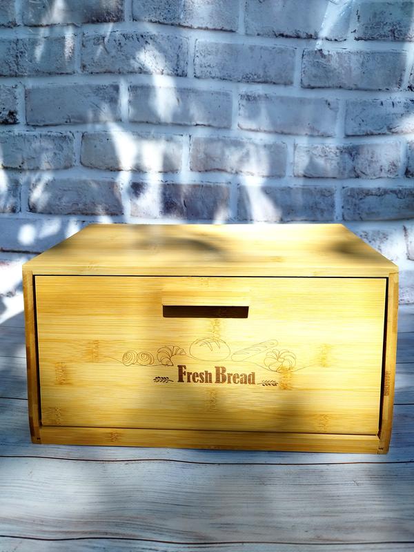 Хлібниця дерев'яна (низ і задня частина ДВП) з відкидною кришкою — дошкою для нарізування. Хлібниця з дерева — це практичний, безпечний, екологічний виріб, який буде у Вашому домі чимало років.< /p> Дивовижною особливістю такої хлібниці є чудове зберігання хліба, він не тільки залишається свіжим і м'яким, але й чудово зберігає свій аромат. Відмітною особливістю цієї хлібниці є практичні дверцята, які під час відкриття перетворюється на дошку для нарізування хліба. Розмір: 34,6*28*17,8см