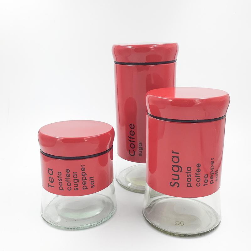 Яскраві і зручні баночки для зберігання будь-яких сипучих продуктів - чаю, кави, цукру, спецій і.т.д. У наборі 3 скляні банки з металевою кришкою. Колір насичений червоний. Герметичні кришки довго зберігають вміст свіжим без стороннього запаху. Обсяг банок: 300ml / 400ml / 500ml.