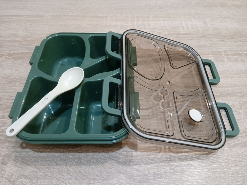 Ланч бокс однорівневий на 5 відділень із ложкою олива, синій.