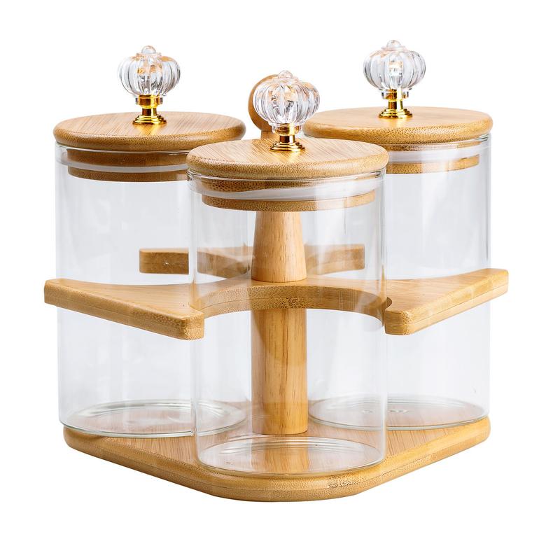 Банки 580 (мл) для сыпучих продуктов набор из 3 шт стеклянные на деревянной подставке ep