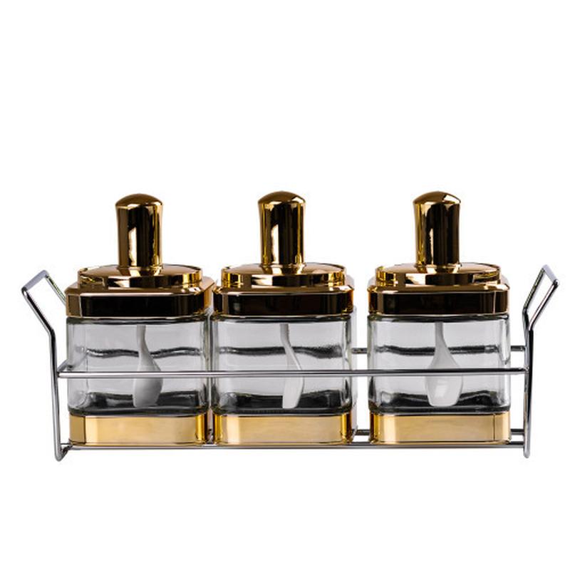 Банки для сипучих продуктів набір із 3 шт на металевій підставці, золото