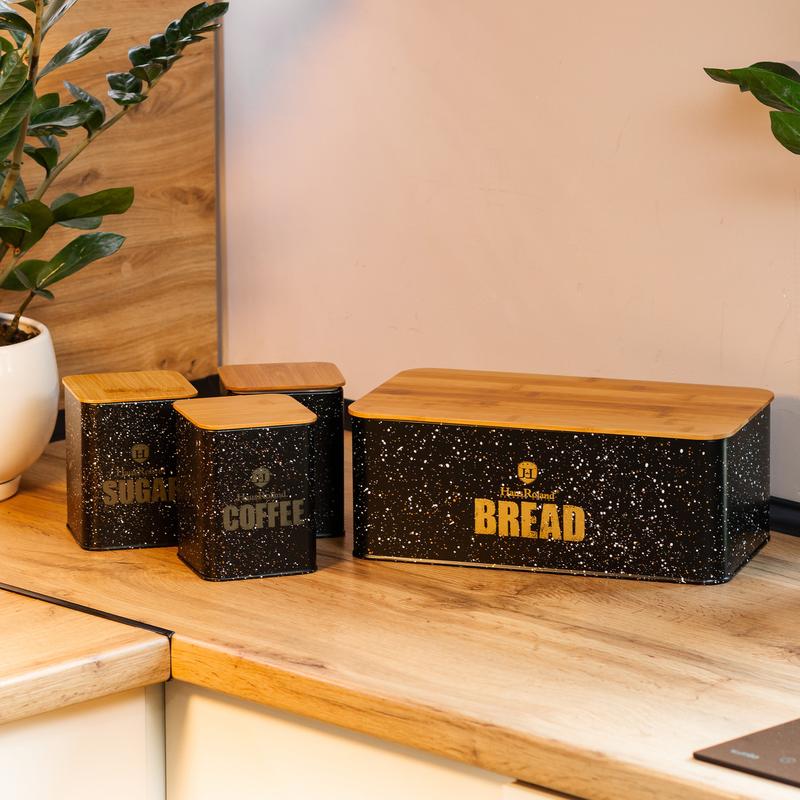 Хлібниця з бамбуковою кришкою з банками для кави чаю цукру по 1 літру набір чорний
