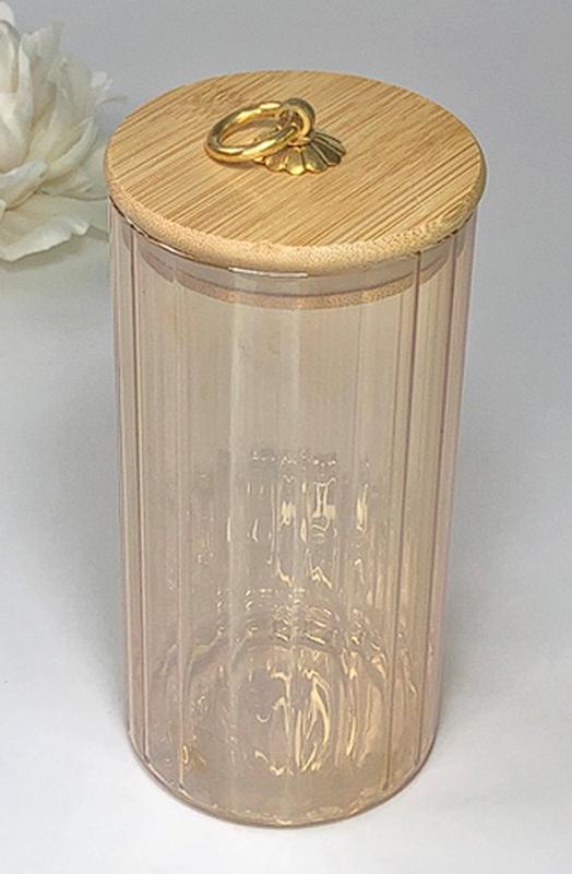 Скляна банка з бамбуковою кришкою ідеально підходить для зберігання цукерок, печива або будь-яких інших продуктів. Кришка щільна, виглядає стильно та оригінально. Гарний посуд для чайної церемонії. Ваші гості будуть у захваті. Розміри 9*18см Матеріал скло, бамбук