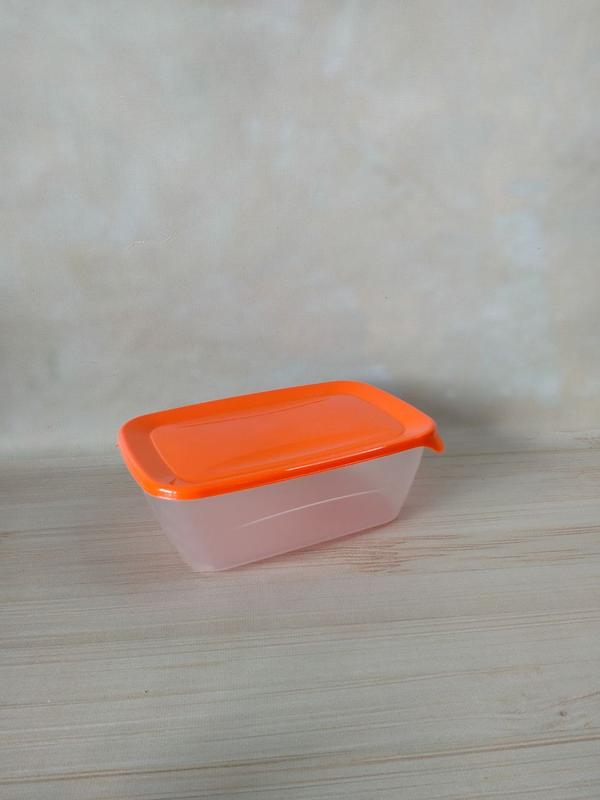 Судок прозрачный с оранжевой крышкой на 1,5 л.