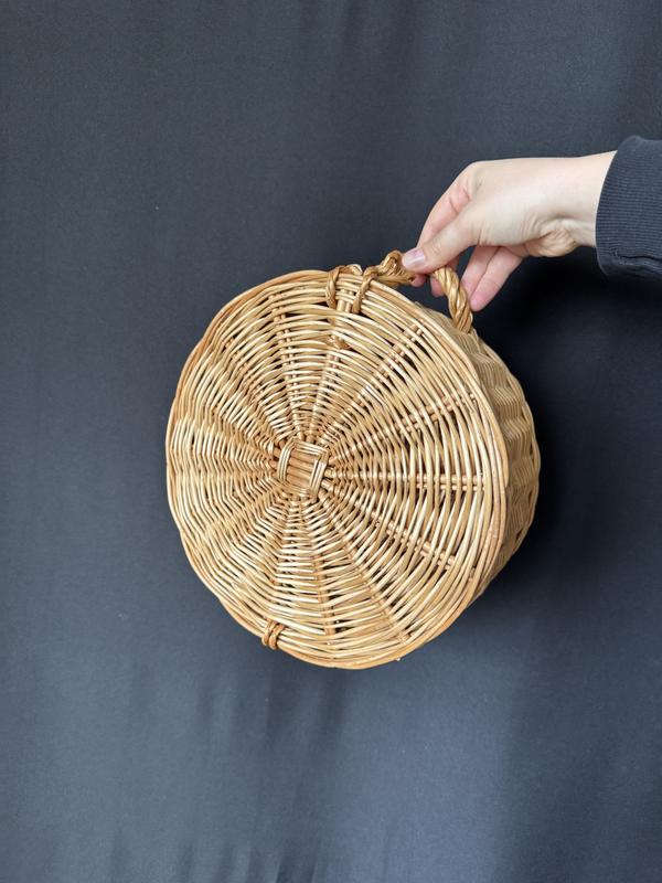 Корзинка соломенная круглая коробка из соломы плетеная из лозы с крышкой для хранения деко...