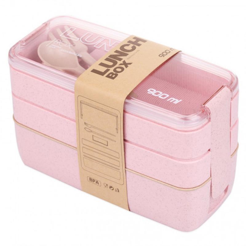 Ланч-бокс потрійний еко "lunch box", 900мл, рожевий