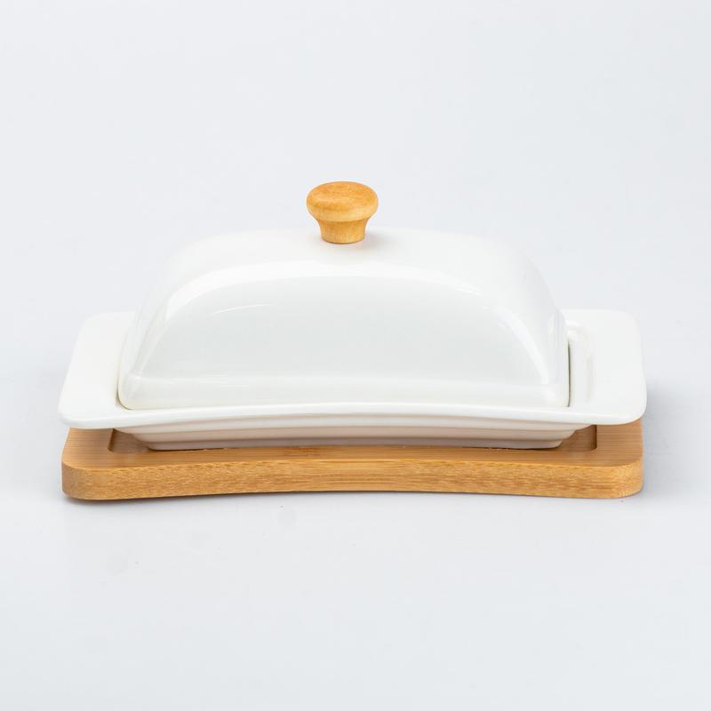 Маслянка керамічна 18 х 11.5 х 7 см на бамбуковій підставці