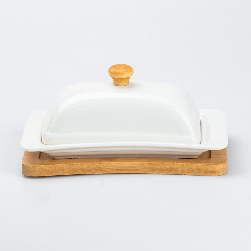 Масленка для сливочного масла и сыра с бамбуковой крышкой. Размер масленки 18 х 11.5 х 7 см. Масленка представляет собой элемент кухонной посуды, предназначенный для хранения и сервировки сливочного масла. Большинство хозяек выбирают именно такой способ хранения, поскольку в таком изделии отлично сохраняются вкусовые качества продукта, и не впитываются различные посторонние запахи. Основные преимущества Универсальность: подходит для хранения сливочного масла, творога, маргарина и т.д. Гигиеничность: бамбук не впитывает запахи, а стекло легко моется. Прозрачная крышка: позволяет видеть содержимое масленки. Компактность: не занимает много места на кухне. Удобство: легко мыть и использовать. Идеально подходит: Для хранения в холодильнике: бамбук защищает масло от посторонних запахов. Для хранения на кухонной стойке: стильный дизайн украсит вашу кухню. Для использования на обеденном столе: практическое решение для сервировки. Вы можете купить масляную и другие товары в нашем интернет магазине по доступной цене с доставкой по Украине.