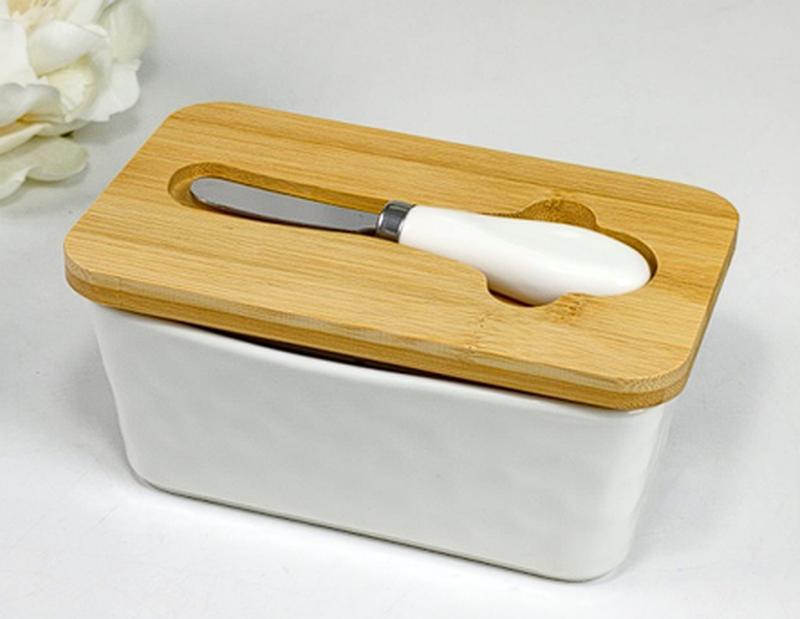 Масленка для масла с деревянной крышкой и ножом «белоснежная 2»