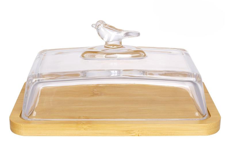 Бамбуковая подставка, на которой размещена масленка, не только придает устойчивости и стабильности этому предмету, но и является декоративным элементом. Бамбук – это крепкий, экологически чистый материал, который придает теплу и естественности кухонному интерьеру. Такая масленка на бамбуковой подставке является практичным и стильным дополнением к кухонному инвентарю, позволяя хранить масло свежим и удобно использовать его во время приготовления блюд. Масленка упакована в белую картонную коробку.