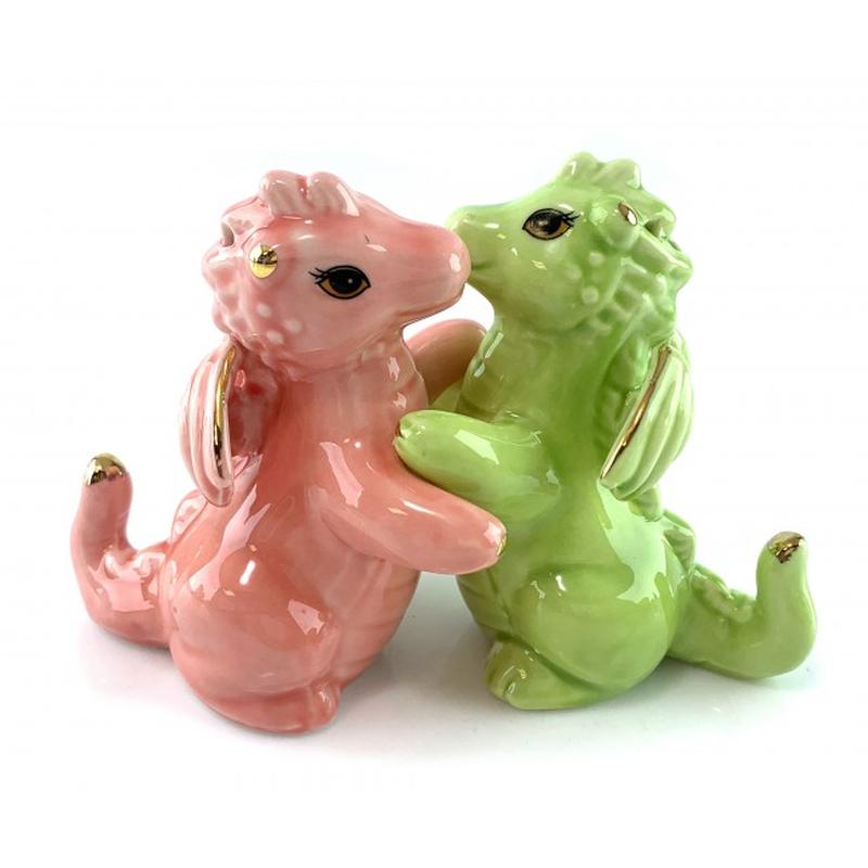 Представляємо наших "Милих Драконів, що обіймаються" – унікальної сільнички та перечниці, які принесуть у ваш стіл та кухню не тільки функціональність, а й веселе мистецтво. Ці милі дракони в рожевому та зеленому кольорі не лише приправлять ваш стіл, але й додадуть ніжність та грайливість у обстановку. Сільничка та перечниця "Мили Обіймаються Дракони" – це втілення веселощів та ніжності в кожній найдрібнішій деталі. Рожевий і зелений кольори створюють м'яку і радісну атмосферу, а дракони, що обіймаються, додають кулінарному досвіду родзинку.