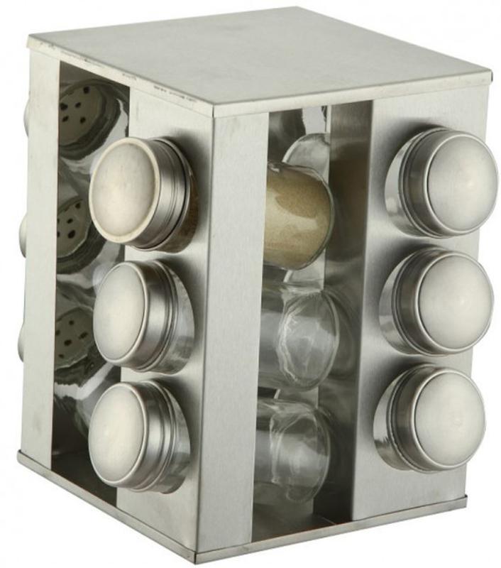 Набір для спецій із неіржавкої сталі 13 предметів Edenberg EB-4026 Зручний і практичний набір для спецій обов'язково стане корисним і незамінним предметом Вашої кухні, адже з його допомогою Ви зможете зберігати відразу 12 різноманітних різновидів спецій. Готувати з таким набором буде набагато зручніше, всі необхідні домішки будуть завжди під рукою. Набір для спецій із неіржавкої сталі 13 предметів Edenberg EB-4026 До комплекту входять 12 скляних ємностей зі спеціальними кришками з неіржавкої сталі та пластиковими сітками для дозування спецій зі зручним механізмом зняття кришки з баночки. Скляні ємності мають розміри 4.2 x 9.3 см.