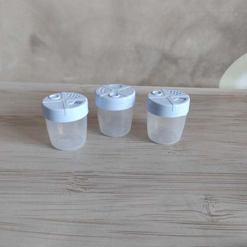 Набор эмкостей для специй 3 шт Цвета крышек в наличии: беж, белый, голубой,серый В наборе эмкости на 0,22 л Эмкости изготовлены из пищевого пластика, которые не боятся посудомы и микроволновки. Крышки имеют поворотный механизм что позволяет насыпать различное количество специй во время готовки блюд. Товар изготовлен в Украине 🇺🇦