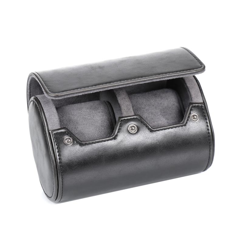 Футляр для зберігання та/або транспортування 2-х годинників. Матеріал корпусу -- PU шкіра. Колір - чорний. Інтер'єр - оксамит темного кольору. Виробник - компанія Salvadore, Австрія. Розміри: 155*100*85mm