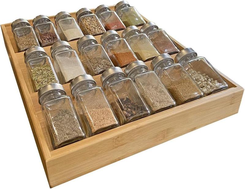 Стійка для спецій з бамбука Simhoo вітринний варіант Похила полиця тримає баночки, щоб легше було читати етикетки на банок Її можна поставити на стільницю, коли ви готуєте, або зберігати в ящику шафи за вашим бажанням БЕЗ БАНОЧОК Розмір 40 * 30 *5 см Глибина полиці 12 см Без коробки