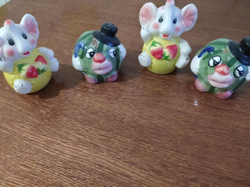 Продам набір сільничка і перцівниця в хорошому стані. Не користувались ними, тільки стояли в серванті. Можна також використовувати як декор. Ціна за один набір. В одному з наборів немає кришечки внизу, на останнім фото показала. Висота слоників 8 см. Кавунців 7 см. Обміну і повернення немає, задавайте питання всім відповім. Оплата на картку Приватбанеку. Доставка УП,НП оплата при отриманні.