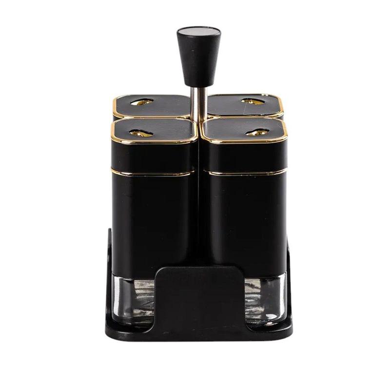 Набор для специй на подставке 4 предмета 10х10х17 см емкости для приправ 120 мл черний
