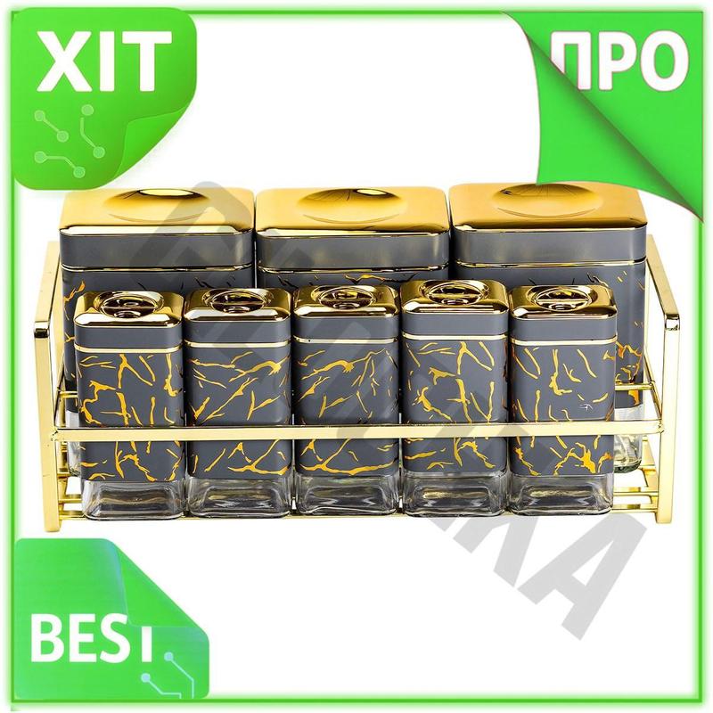 Ve набор для специй на new version подставке 8 штук серый стеклянные банки с крышками для...
