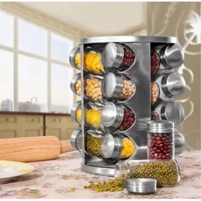 Карусель для спецій Spice carousel 16 відсіків Хочете навести лад на кухні, щоб у кожної баночки, каструлі завжди було своє місце? Цей набір легко допоможе Вам знайти місце для спецій, солі, цукру та інших сипучих продуктів. Вирізняється виріб красивим, сучасним дизайном, завдяки чому чудово впишеться в інтер'єр кухні. Виконано підставку з міцної нержавіючої сталі, виріб може обертатися по колу. Баночки зроблені зі скла. Набір легко очищується після експлуатації. Зручний оригінальний спецівник дозволяє зберігати спеції тривалий час без втрати їх кулінарних якостей. Переваги: З підставкою для спецій усі необхідні приправки будуть під рукою Завдяки прозорості ємностей можна побачити вміст та переконатися, що ви взяли саме те, що хотіли Якщо зберігати приправу у відкритих пакетиках, то вона втрачає свій аромат. Спеціалісти зберігають смак і запах приправ Також за допомогою баночок Ви зможете компактно розмістити спеції, заощадити місце та забезпечити порядок. Довговічна Spice Carousel 16 шт. відрізняється елегантним дизайном, тому відмінно виглядатиме на кожній кухні Розміри конструкції: 28 х 18 см; Розміри баночки: 9 х 4,5 см. Характеристики: Тип: набір для спецій Призначення: для зберігання Матеріал ємностей: скло/нержавіюча сталь Матеріал підставки: нержавіюча сталь Конструкція: стійка/підставка Колір ємностей: прозорий Колір підставки: сталь Комплектація: 16 х Скляні ємності; 1 х обертова підставка; 1 х Фірмова упаковка