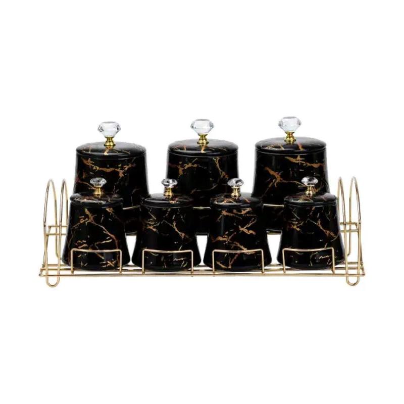 Набір для спецій 4 шт по 250 мл і 3 шт по 550 мл на металевій підставці чорний hp1249
