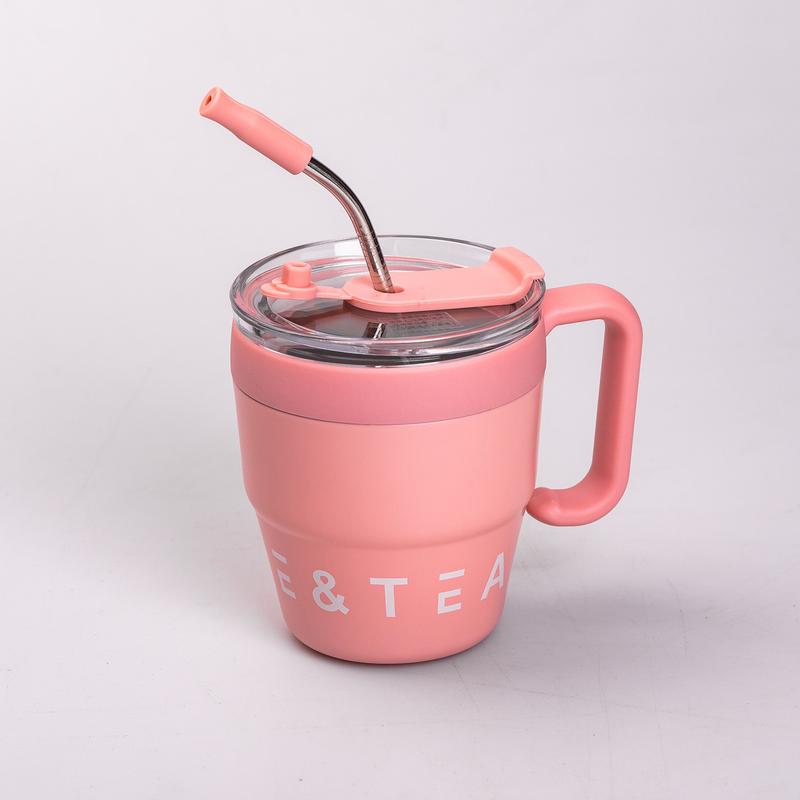 Термочашка з ручкою 480 мл – це практичний і зручний аксесуар, який дозволить вам насолоджуватися улюбленим напоєм, чи то гаряча кава, ароматний чай або відсвіжний сік, в будь-якому місці й в будь-який час. Внутрішня колба виготовлена з високоякісної нержавіючої сталі - цей матеріал є безпечним для здоров'я, не накопичує запахи та не впливає на смак напою. Рожева матова термочашка поєднує в собі відразу два формати для комфортного пиття: металеву трубочку; отвір із клапаном. Обидва отвори надійно закриваються захисними герметичними клапанами, які запобігають проливанню напою. Основні характеристики об'єм 480 мл; висота 10 см; діаметр 7.5 см. Основні переваги Термочашка із вакуумною ізоляцією здатний зберігати температуру напою протягом декількох годин. Ручка забезпечує зручний хват, навіть якщо ваша рука в рукавичці. Кришка термочашки щільно закривається, що захищає напій від проливання. Термочашка незамінна у дорозі, у спорт залі, на прогулянках і пікніках. Вона чудово утримує тепло чи холод, зберігаючи температуру напоїв. Ви зможете довго ласувати гарячим ароматним чаєм або ідеально крижаним лимонадом.