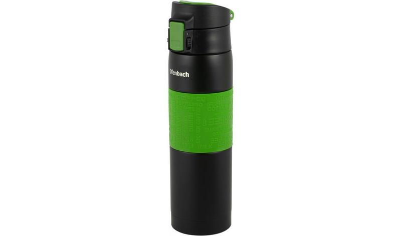 Термос-пляшка (термокухоль) Ofenbach Elegance питний — створена спеціально для активного відпочинку. Об'єм 480 мл. Корпус термоса та внутрішня колба з високоякісної неіржавкої сталі. Корпус покритий чорною матовою емаллю з TPR- вставкою (силікон) зеленого кольору для надійного та зручного обхвату та для унеможливлення ковзання в руці. Пластикова кришка з вбудованим механічним клапаном, засувкою та зручною поїлкою. Орієнтовний час збереження температури 6-8 годин. Термокружка Ofenbach Elegance 100% герметична. Упакована у фірмову подарункову коробку.